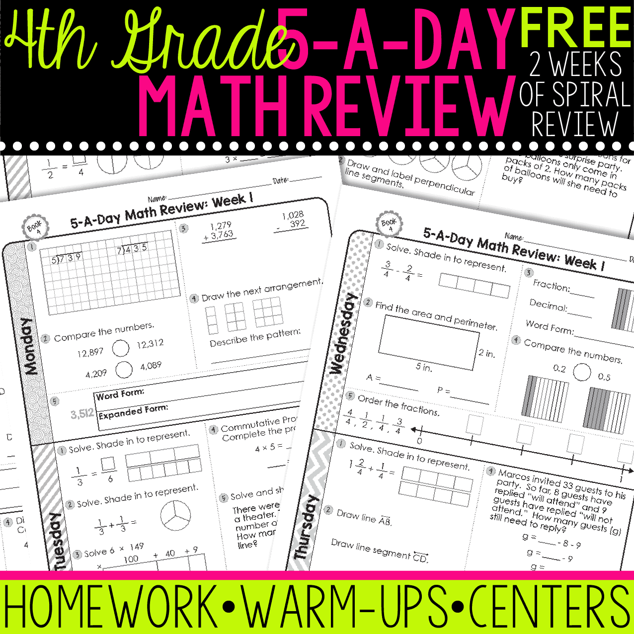 4th Grade Daily Spiral Review Worksheets, Educational Activity, Home Learning, Homeschool, Math